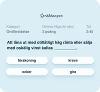 SpelaDu kan träna olika språkförmågor i din takt. Du kan välja en, flera eller alla kategorier för att höja dina svenska skills. Det finns även veckans kviss och enskilda språkmatcher.